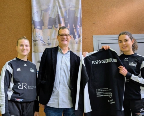 Leonie Reus (rechts) und Jasmin Mineif bedanken sich beim Sponsor Dr. Stephan Ramstöck, der zusammen mit Raffaello Rossi für die Finanzierung sorgte. Die TUSPO sagt DANKE!