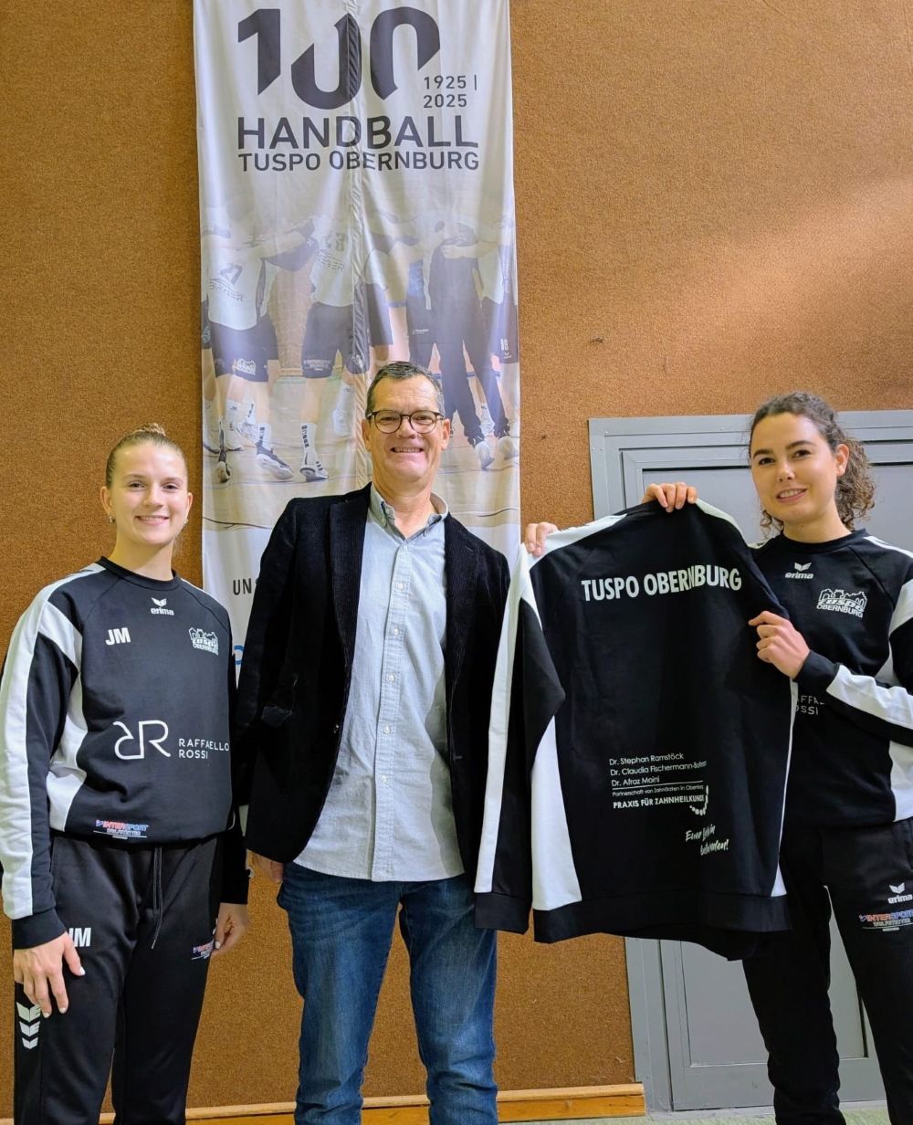 Leonie Reus (rechts) und Jasmin Mineif bedanken sich beim Sponsor Dr. Stephan Ramstöck, der zusammen mit Raffaello Rossi für die Finanzierung sorgte. Die TUSPO sagt DANKE!