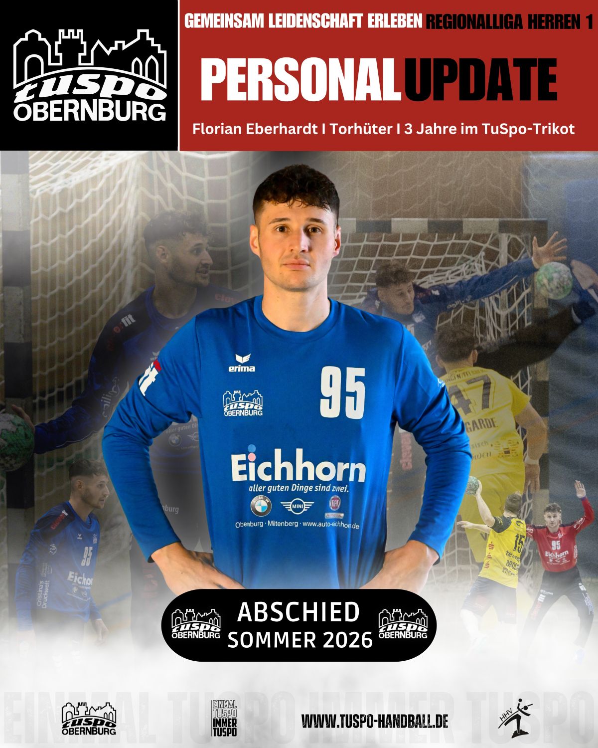 Florian Eberhardt verabschiedet sich mit folgenden Worten: „Liebe TuSpo-Familie, nach einer intensiven und prägenden Zeit bei euch in Obernburg ist für mich der Moment gekommen, ab Sommer 2026 ein neues Kapitel meiner handballerischen Laufbahn aufzuschlagen.