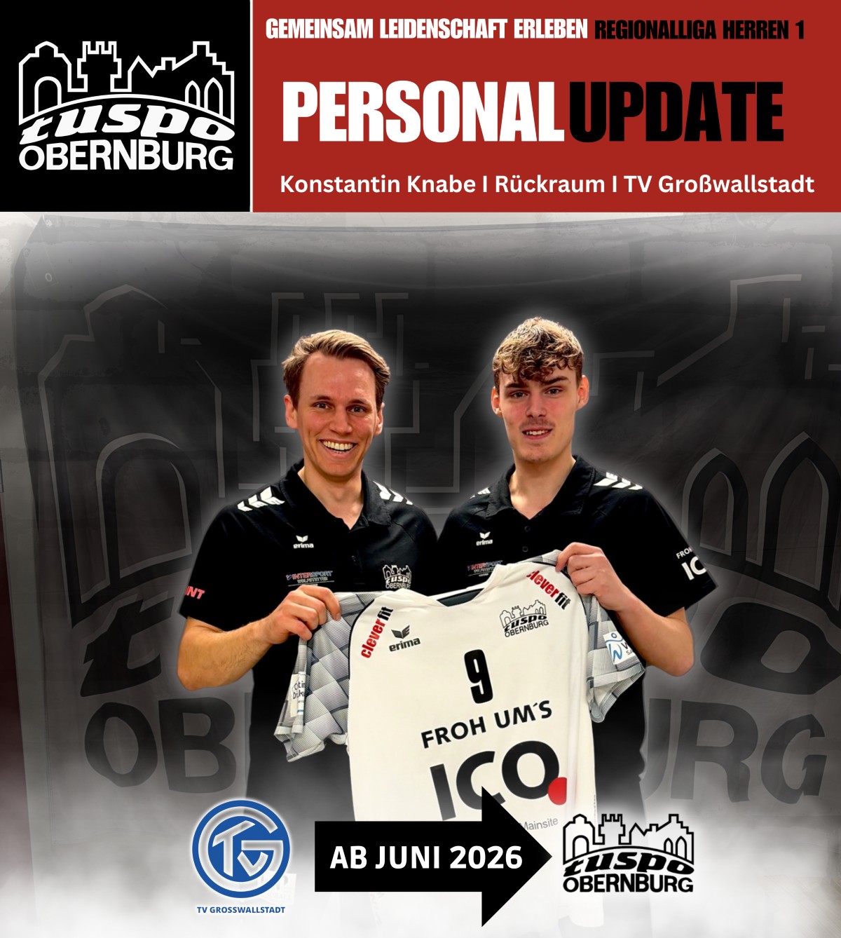 Die Tuspo Obernburg verpflichtet das nächste junge Talent aus der Region und baut somit weiter an der Perspektive ihrer Regionalliga Mannschaft. Konstantin Knabe wechselt aus der Bundesliga-Reserve des TV Großwallstadt in die Römerstadt und unterschreibt dort einen Zwei-Jahres-Vertrag.