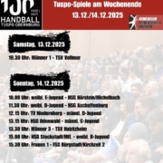 Im letzten Spiel des Jahres 2025 musste die männliche C-Jugend in der Bezirksoberliga bei der HSG Odenwald antreten. In dem sehr ausgeglichenen Spiel mit ständig wechselnden Führungen lag die Tuspo zur Halbzeit mit 18:20 im Rückstand. Doch mit einer starken kämpferischen Leistung drehten die Tuspo-Jungs in der 2. Hälfte das Spiel, gingen beim 23:24 in […]