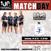 Am Sonntag, 21.09.25 steht für die Tuspo das erste Auswärtsspiel der neuen Saison auf dem Programm. Um 17.15 Uhr trifft die Wollbeck-Truppe auf die HSG Breckenheim/Wallau-Massenheim, die ganz sicher zu den „Top-5-Mannschaften“ der Regionalliga gehört. Im ersten Spiel der Saison musste die Mannschaft von Trainer Tobias Schimmelbauer allerdings eine knappe 24:26-Niederlage bei der TSG Offenbach-Bürgel […]